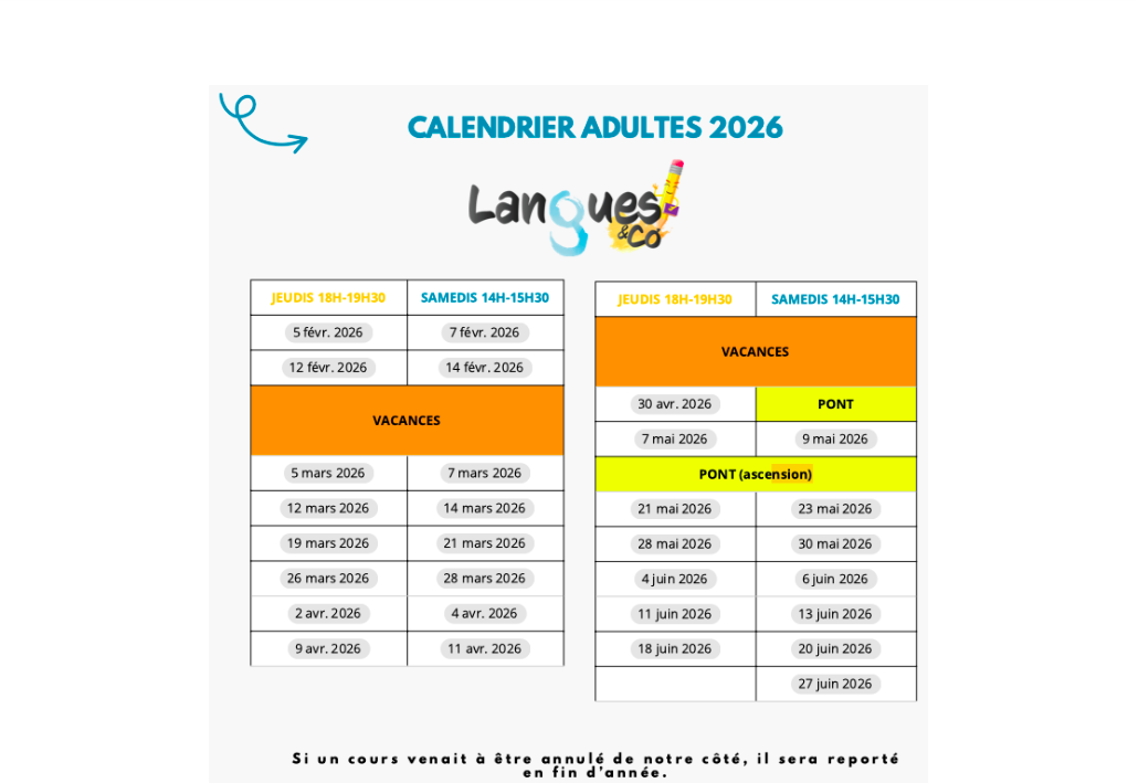 Grande nouveauté 2026 : Langues & Co lance des ateliers d’anglais collectifs, une solution concrète et accessible pour les adultes débutants souhaitant oser parler anglais, voyager sereinement et communiquer avec confiance dans les situations essentielles du quotidien. Convaincus de votre potentiel, nous vous accueillons dès le 5 février 2026 à Valenciennes.